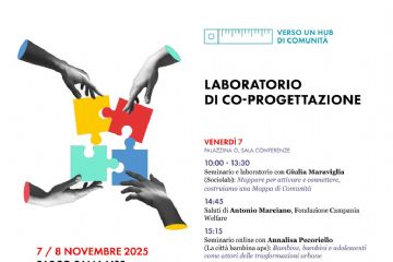 7 - 8 novembre 2025 Percorso partecipativo "Verso un hub di comunità" Venerdì 7 e sabato 8 novembre, il Parco San Laise di Napoli si trasforma in un grande laboratorio di idee, creatività e partecipazione con il Laboratorio di Co-Progettazione, promosso da Fondazione Campania Welfare con il supporto dell’Università IUAV di Venezia.Due giornate per immaginare insieme il futuro del Parco, costruendo una Mappa di...